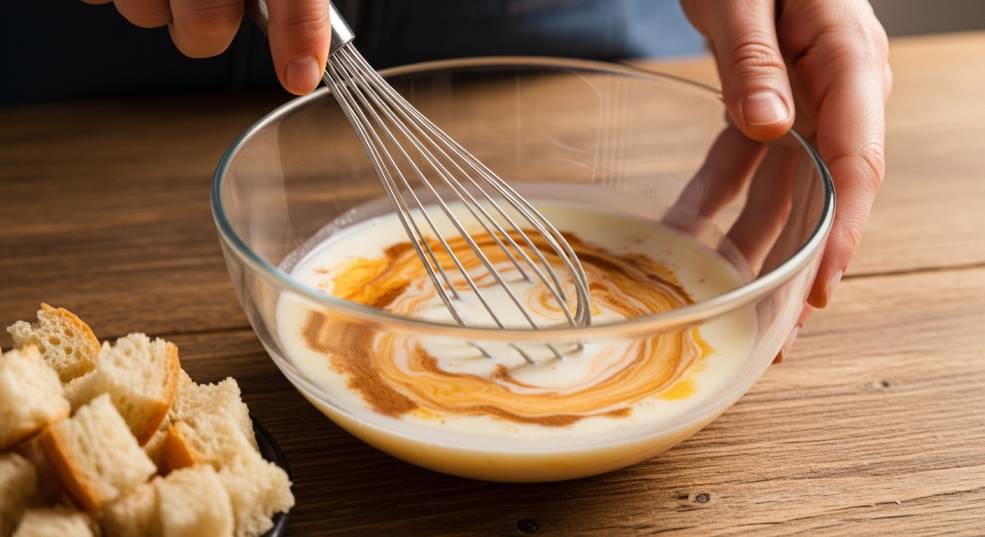The smell of the vanilla and cinnamon together is very cozy for everyone. This liquid is what makes the bread taste like a real french toast. It adds a lot of rich flavor that your family will love the most during a big Sunday brunch.