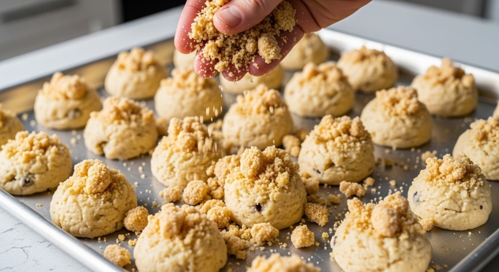 Another reason people love these cookies is the cinnamon flavor. It is warm but not strong. It feels comforting without being heavy. The brown sugar in the topping melts slightly as the cookies bake, giving a gentle caramel taste.