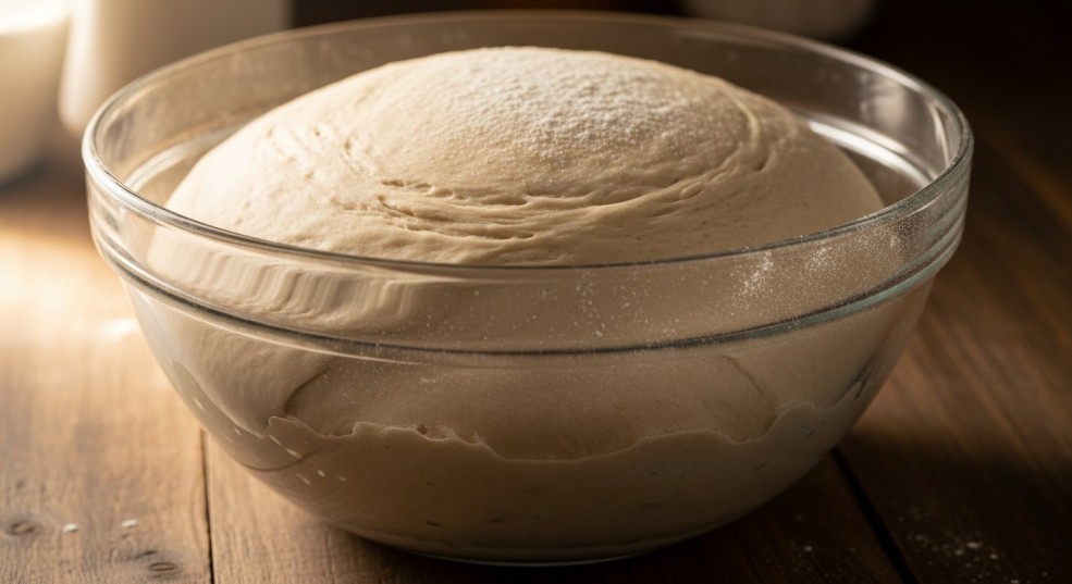 Once the dough has risen, gently punch it down to release air. Place it on a lightly floured surface.