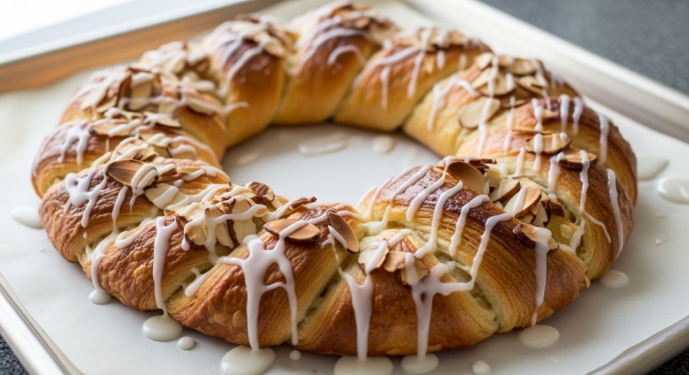 Almond kringle stands out because of its texture. The dough bakes into soft layers that pull apart easily. Inside, the almond filling stays creamy and lightly sweet. The top glaze adds just enough sweetness without taking over.