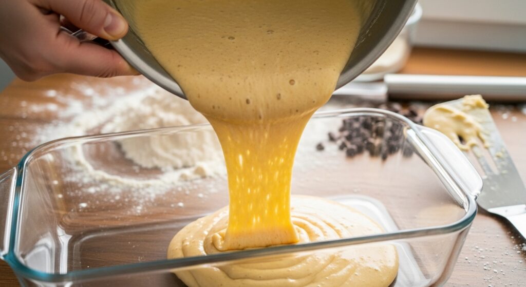 Pour in the milk and vanilla extract. Mix gently until combined. Do not rush this step. Slow mixing keeps the batter light.