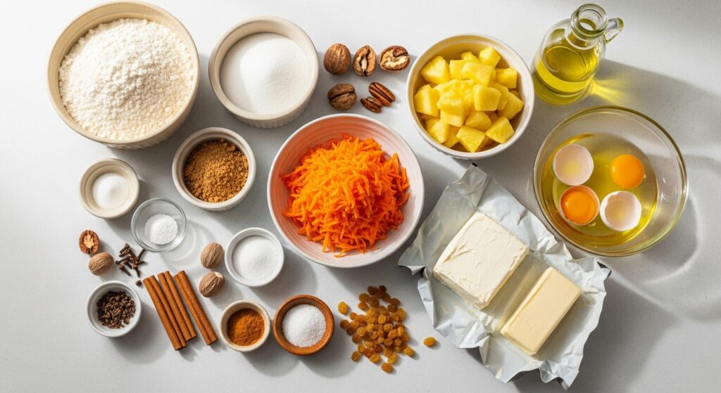 This cake stands apart because of the crushed pineapple. Many carrot cakes rely only on oil and eggs for moisture. Pineapple adds extra softness and a light fruity flavor that blends well with the carrots.