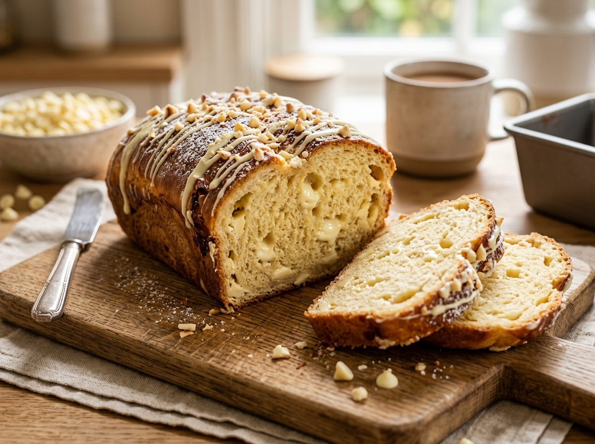 White chocolate bread is soft, slightly sweet, and full of creamy chocolate bites in every slice. It’s simple enough for beginners but feels like something straight from a bakery.